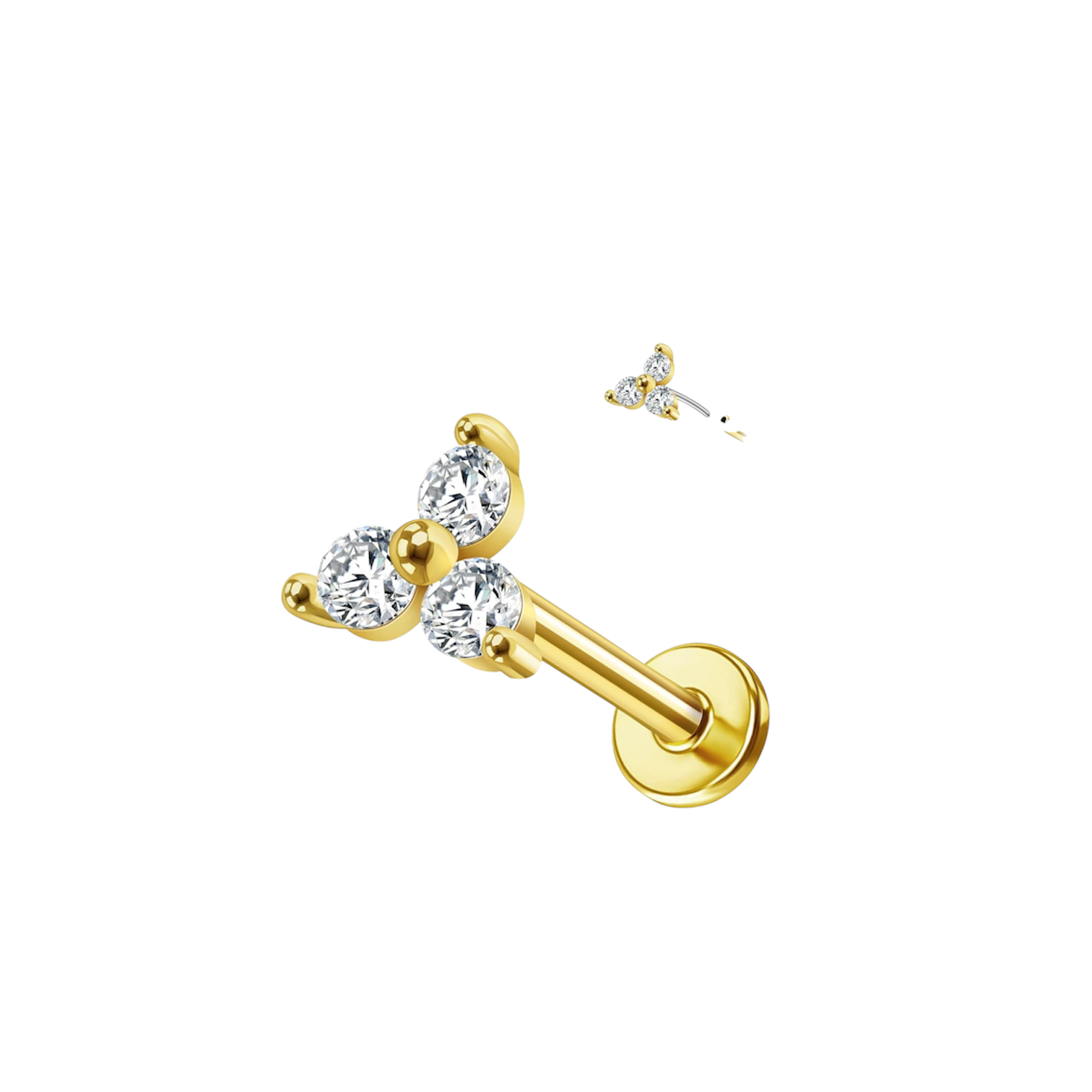 Joyería piercing Granito de Arena, Pequeño Verano Push Pin oro macizo 14k