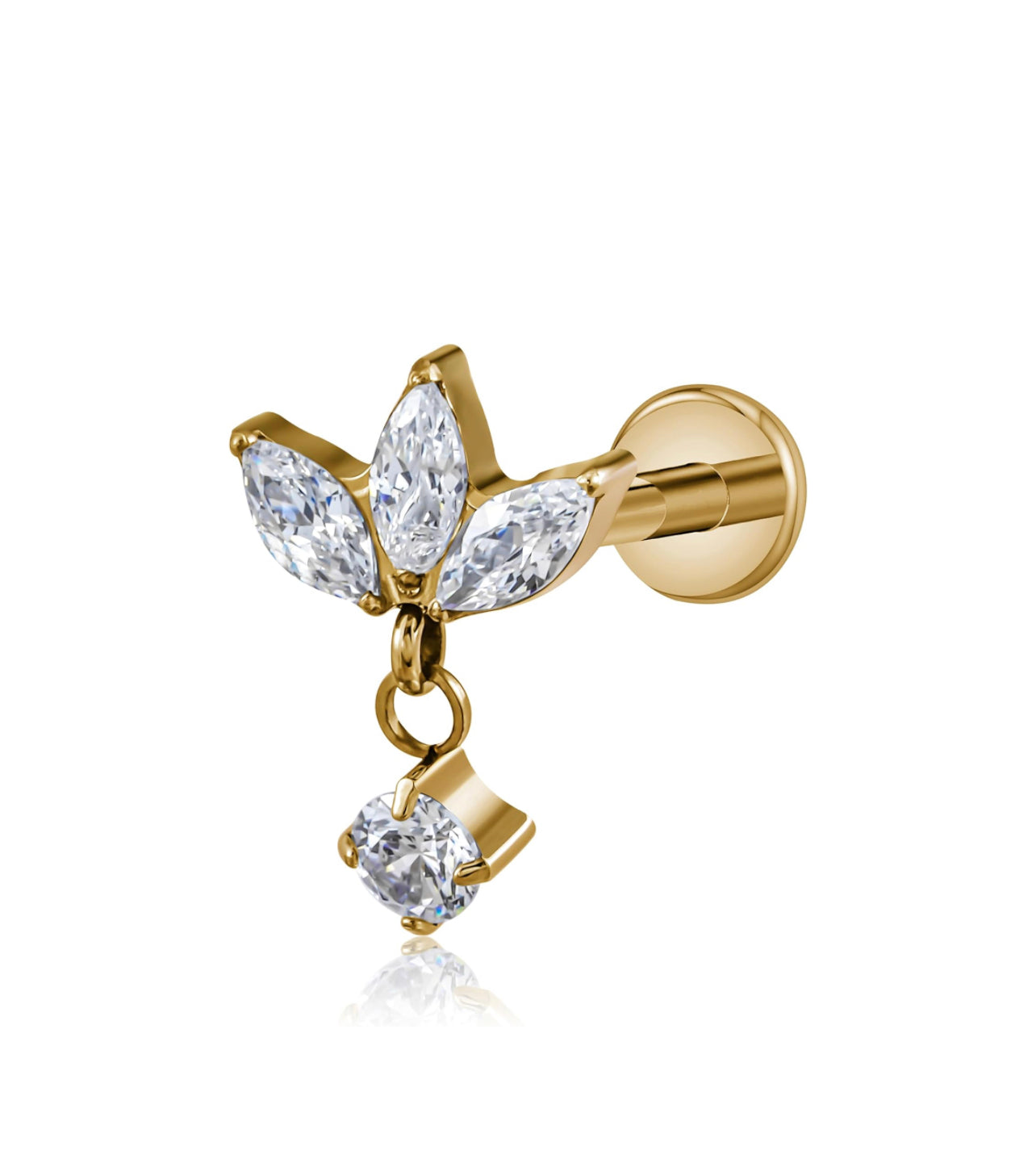 Parte trasera plana con circonita blanca real de 14k